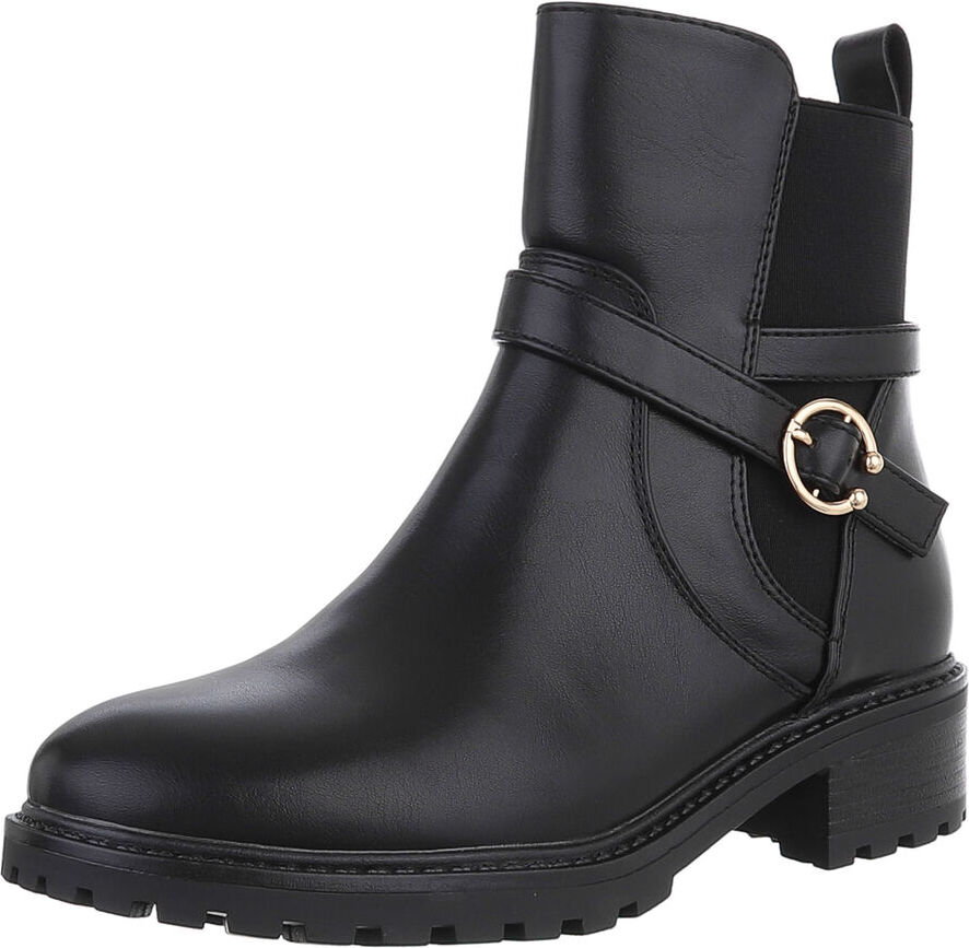 Ital-Design Damen Freizeit Stiefelette (88489438) Blockabsatz Flache Stiefeletten in Schwarz (schwarz)