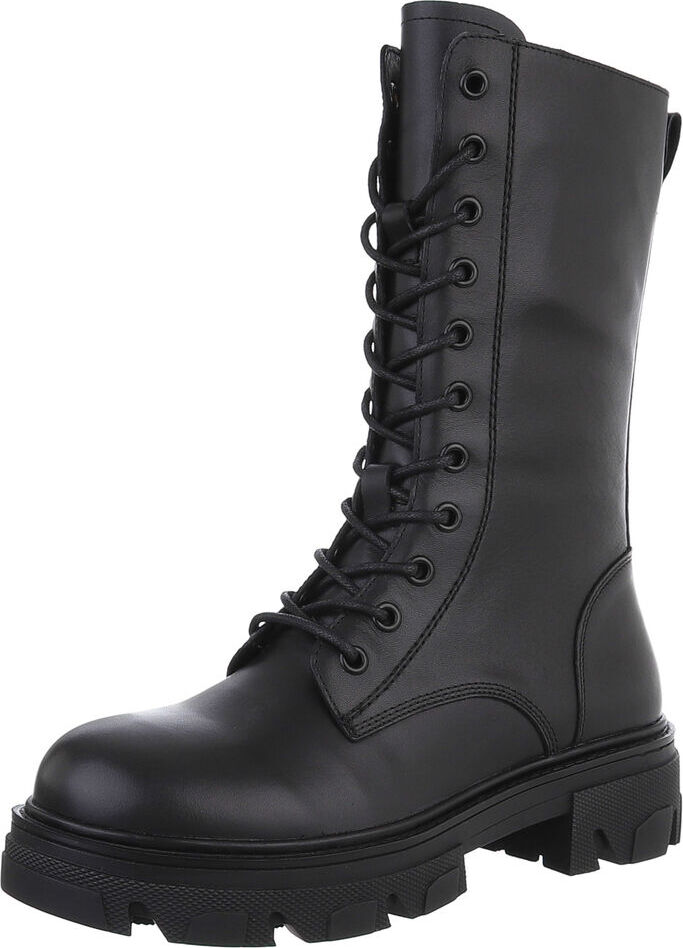 Ital-Design Damen Freizeitschnürschuhe aus echtem Leder Schnürstiefelette (88489288) Blockabsatz Stiefeletten in Schwarz (schwarz)