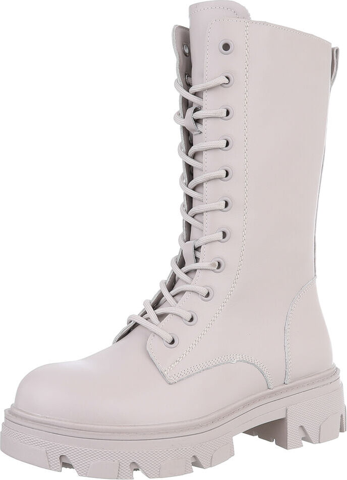 Ital-Design Damen Freizeitschnürschuhe aus echtem Leder Schnürstiefelette (88489294) Blockabsatz Stiefeletten in Beige (beige/braun)
