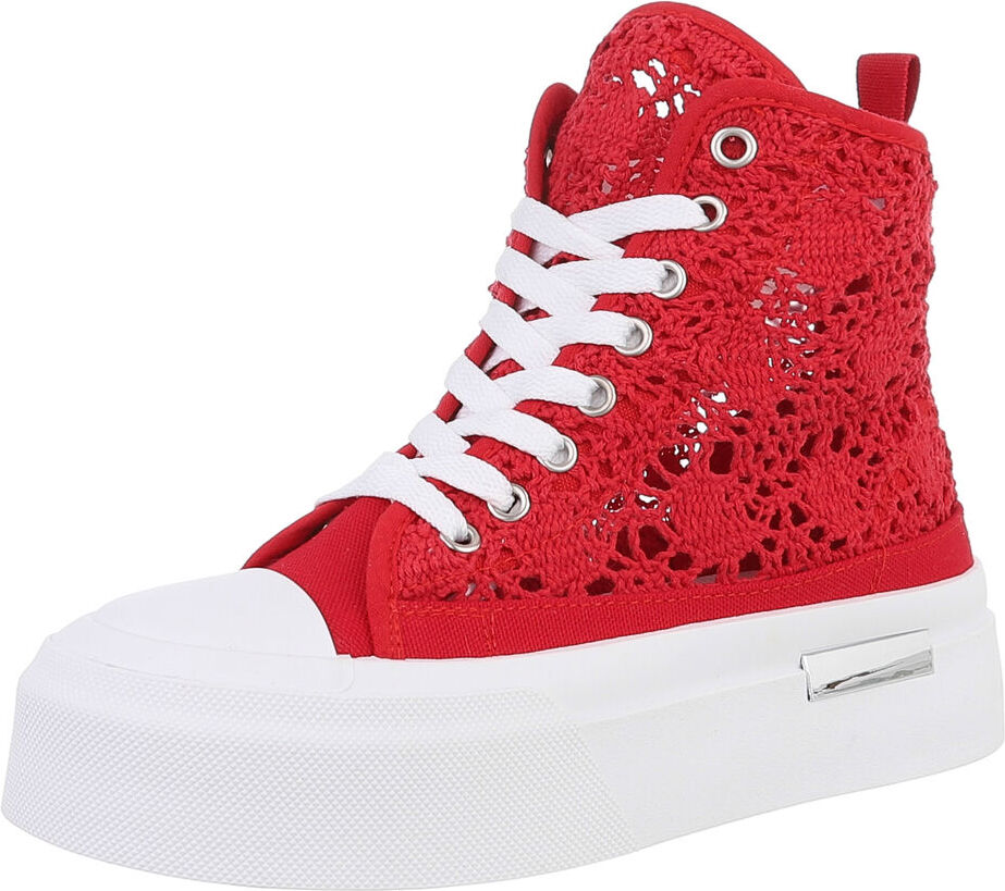 Ital-Design Damen High-Top Freizeit Sneakerboots (88828288) Flach Sneakers High in Rot (rot/weiß)