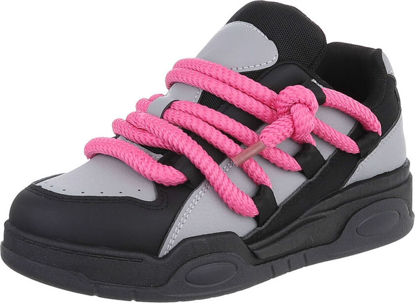 Ital-Design Damen Low-Top Freizeit Sneaker (87284000) Keilabsatz/Wedge Sneakers Low in Schwarz (grau/schwarz)