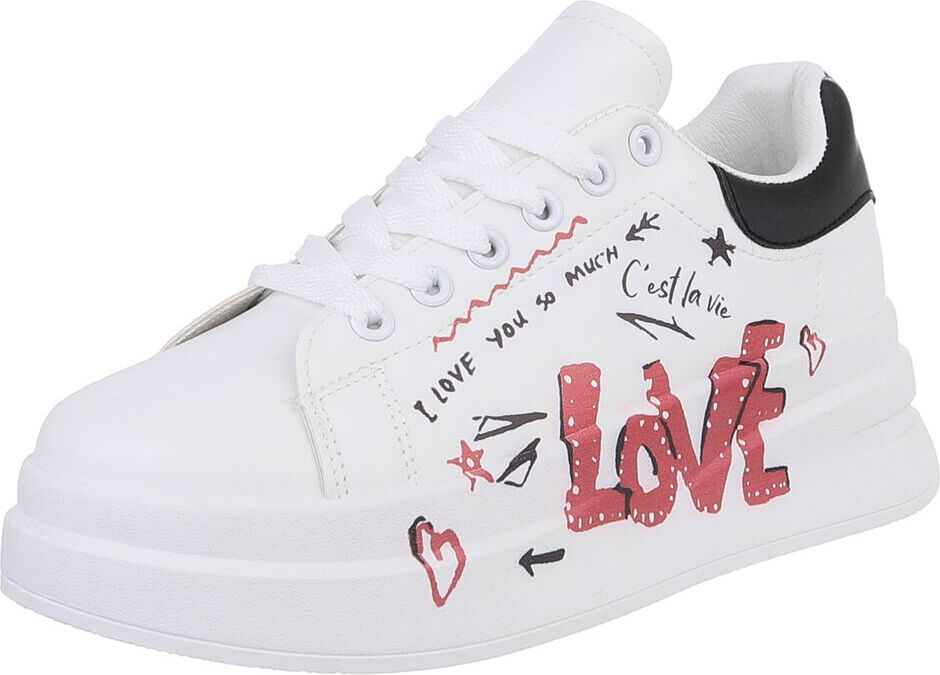 Ital-Design Damen Low-Top Freizeit Sneaker (88519170) Flach Sneakers Low in Weiß (schwarz/weiß)