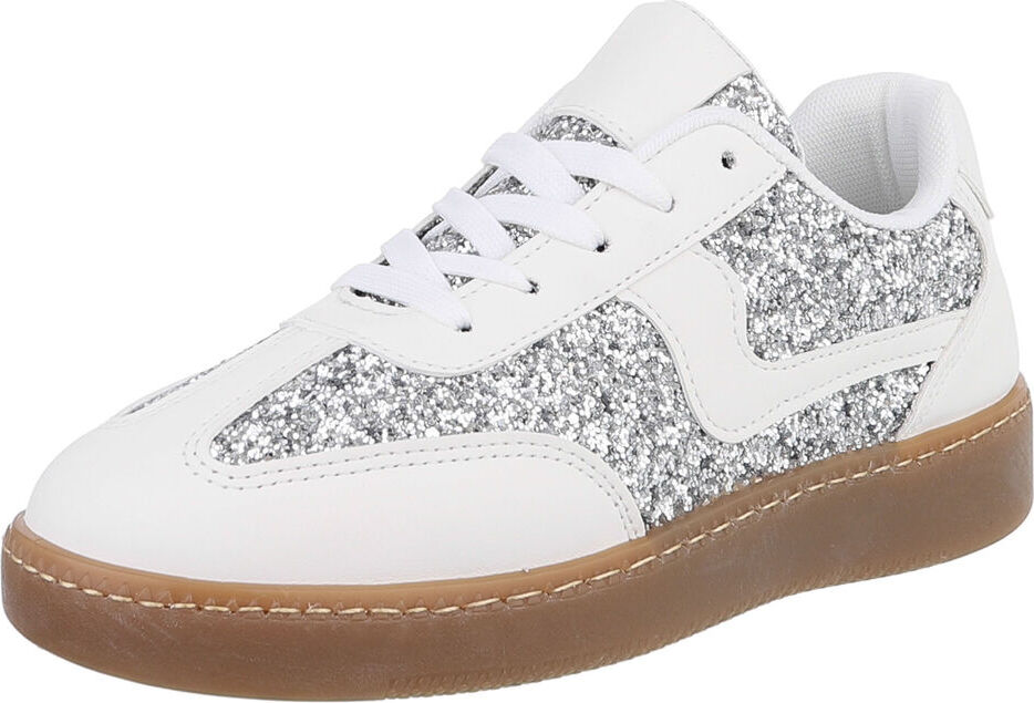 Ital-Design Damen Low-Top Freizeit Sneaker (88519179) Flach Sneakers Low in Weiß (silber/weiß)