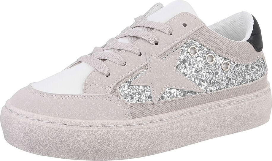 Ital-Design Damen Low-Top Freizeit Sneaker (88519599) Flach Sneakers Low in Weiß (silber/weiß)