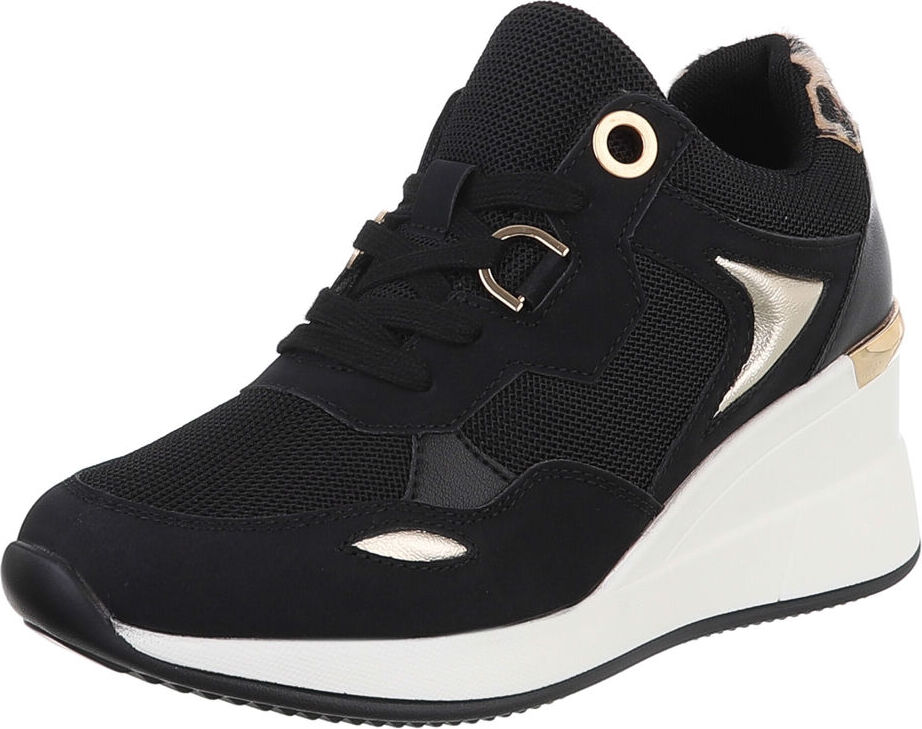SchuhtypFreizeitschuhe, Sneakers LowVerschlussLochschnürungAbsatzartKeilabsatz/WedgeAbsatzhöhe ca.7 cmPlateauhöhe ca.2 cmSchuhspitzeRundOptische DetailsMetallischMaterialSynthetik, TextilInnenmaterial/-futterTextil, SynthetikMaterial SohleSynthetikMaterialoptikTextiloptik, LederoptikMaterialeigenschaftenWeiches FußbettFarbeSchwarz, WeißStilLow-TopThemaFreizeitSaisonGanzjährigProdukt ID88577414