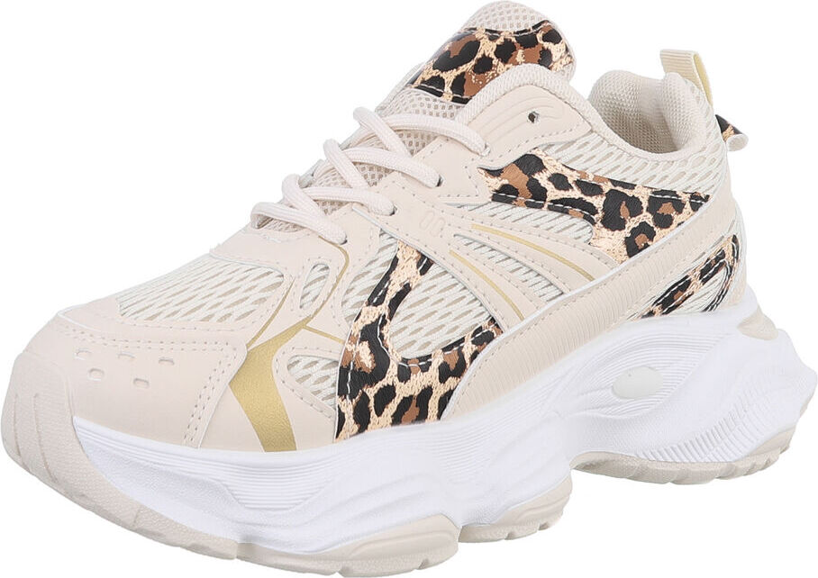 Ital-Design Damen Low-Top Freizeit Sneaker (88828236) Keilabsatz/Wedge Sneakers Low in Beige (beige/braun)