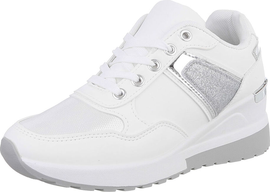 Ital-Design Damen Low-Top Freizeit Sneaker (88843626) Keilabsatz/Wedge Sneakers Low in Weiß (silber/weiß)