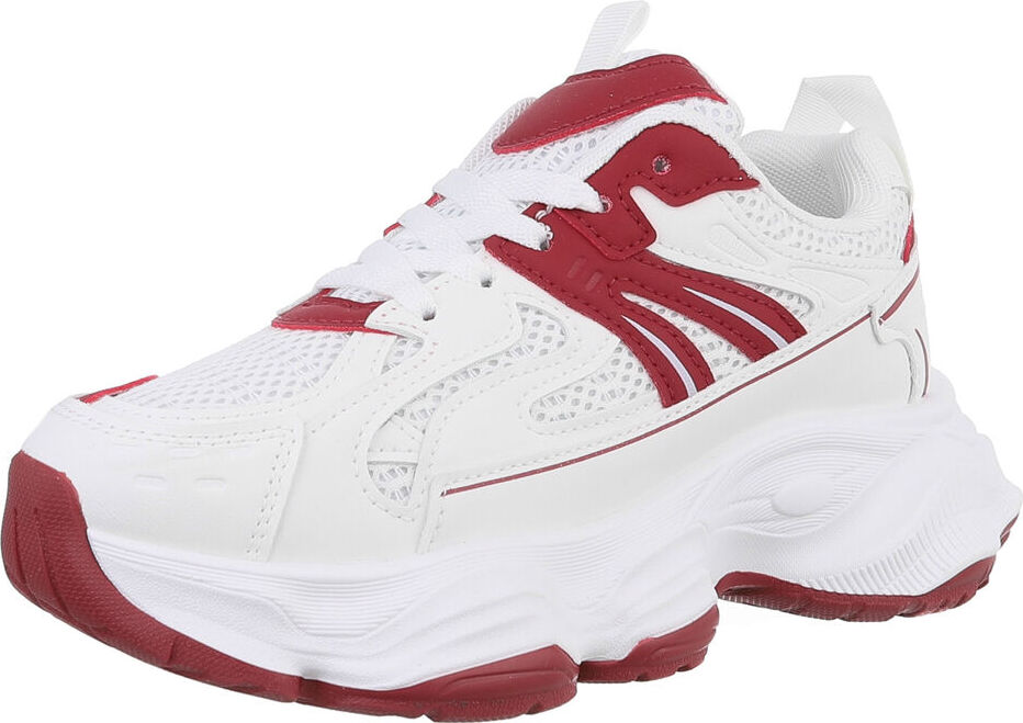 Ital-Design Damen Low-Top Freizeit Sneaker (88930570) Keilabsatz/Wedge Sneakers Low in Weiß (rot/weiß)