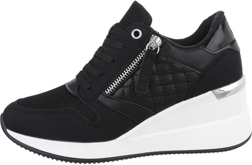 Ital-Design Damen Low-Top Freizeit Sneaker Keilabsatz/Wedge Sneakers Low in Schwarz (schwarz)
