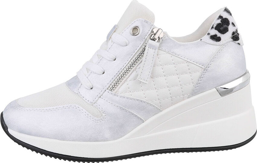 Ital-Design Damen Low-Top Freizeit Sneaker Keilabsatz/Wedge Sneakers Low in Silber (silber/weiß)