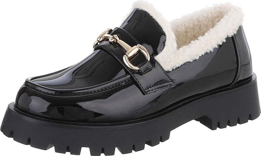 Ital-Design Damen Mokassins Freizeit Slipper (87124675) Blockabsatz Mokassins in Schwarz (schwarz)