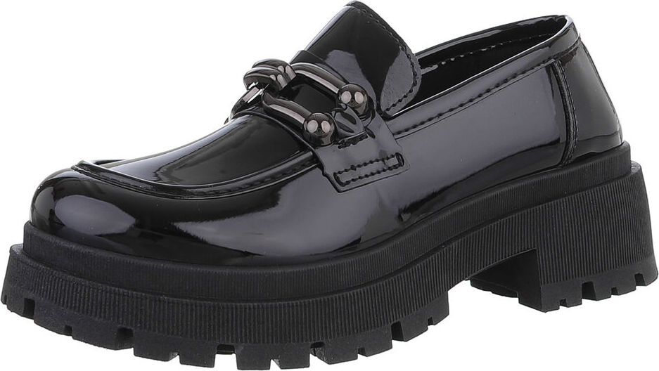 Ital-Design Damen Mokassins Freizeit Slipper (88828129) Blockabsatz Mokassins in Schwarz (schwarz)