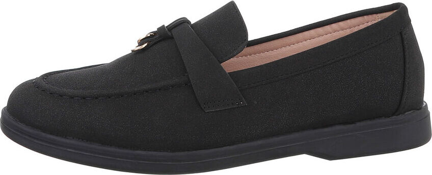 Ital-Design Damen Mokassins Freizeit Slipper Blockabsatz Mokassins in Schwarz (schwarz)