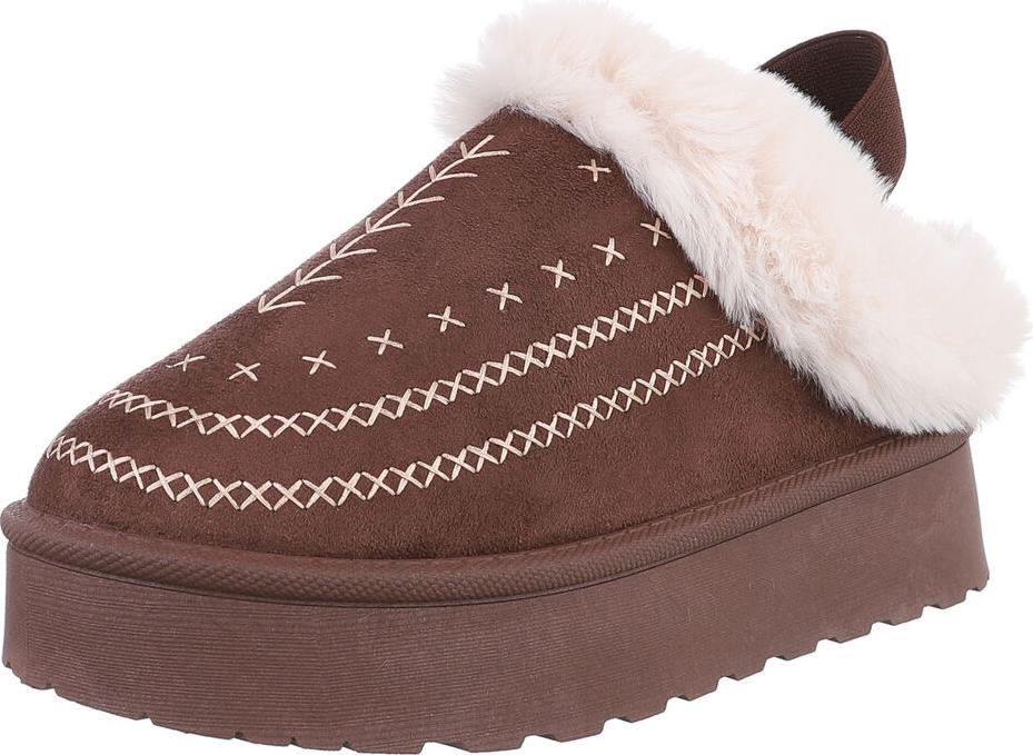 Ital-Design Damen Plüsch Slip-On Schuhe für Alltag und Freizeit Snowboots (90457927) Flach Stiefeletten in Braun (braun)