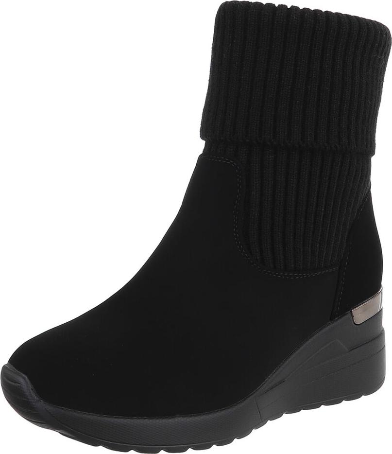 Ital-Design Damen Schlüpfschuh mit Strickmanschette für Alltag und Freizeit Keilstiefelette (90514882) Keilabsatz/Wedge Stiefeletten in Schwarz (schwarz)
