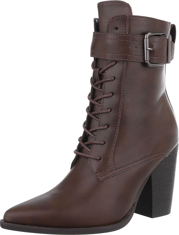 Ital-Design Damen Schnürschuhe Elegant Schnürstiefelette (87740230) Blockabsatz Stiefeletten in Braun (braun)