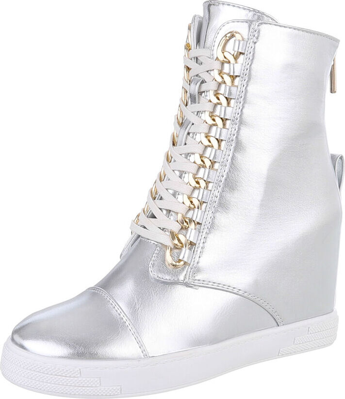 Ital-Design Damen Schnürschuhe Freizeit Schnürstiefelette (87108886) Keilabsatz/Wedge High-Heel Stiefeletten in Silber (silber)