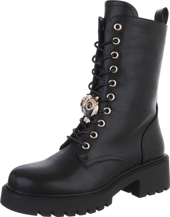 Die robusten Schnürungen sorgen für eine perfekte Passform und gleichzeitig eine individuelle Anpassung an den Fuß. Die verzierte Applikation in Form einer Eule verleiht den Boots eine verspielte und zugleich elegante Note, die dem Look das gewisse Etwas gibt.