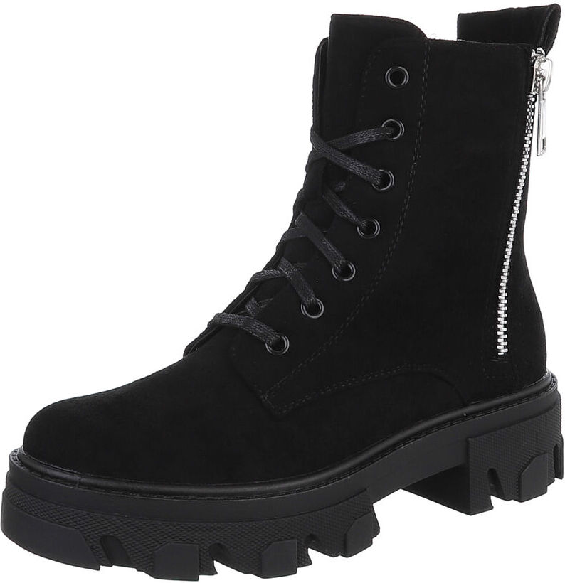 Ital-Design Damen Schnürschuhe Freizeit Schnürstiefelette (87118198) Blockabsatz Plateaustiefeletten in Schwarz (schwarz)