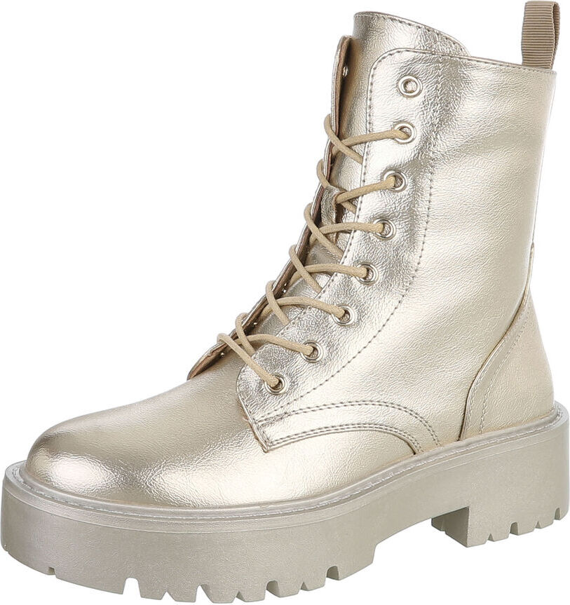 Ital-Design Damen Schnürschuhe Freizeit Schnürstiefelette (87124788) Blockabsatz Plateaustiefeletten in Gold (gold)