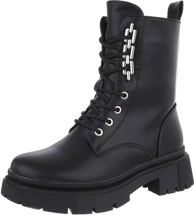 Ital-Design Damen Schnürschuhe Freizeit Schnürstiefelette (87451871) Blockabsatz Stiefeletten in Schwarz (schwarz)