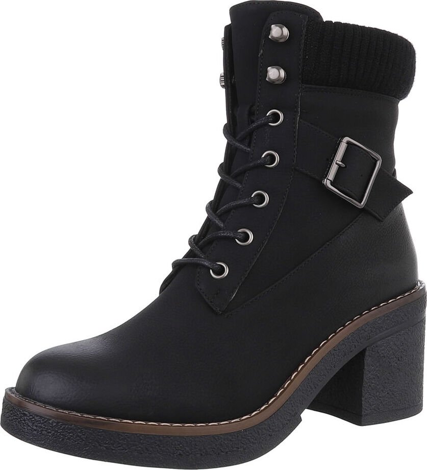 Ital-Design Damen Schnürschuhe Freizeit Schnürstiefelette (88519556) Blockabsatz Stiefeletten in Schwarz (schwarz)