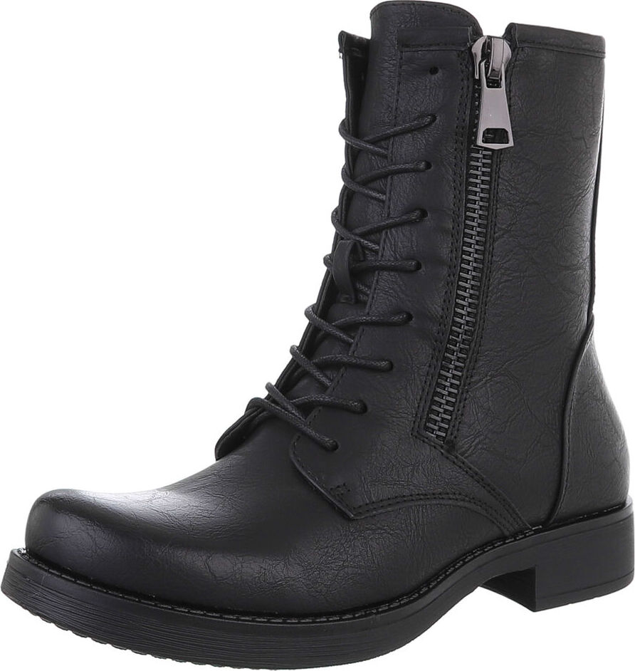 Ital-Design Damen Schnürschuhe Freizeit Stiefelette (87740386) Blockabsatz Schnürstiefeletten in Schwarz (schwarz)