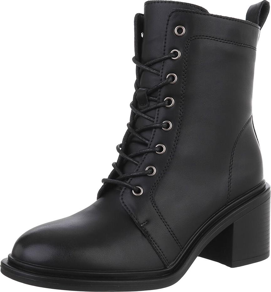 Ital-Design Damen Schnürstiefeletten aus echtem Leder mit Blockabsatz Schnürstiefelette (90169361) Blockabsatz Stiefeletten in Schwarz (schwarz)