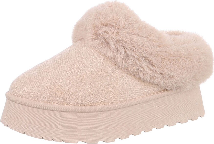 Der weiche Kunstfellbesatz schmiegt sich angenehm an deine Füße und sorgt für wohlige Wärme, während die gepolsterte Plattform für extra Komfort sorgt. Diese Hausschuhe sind ideal für lange Abende zu Hause oder für Tage, an denen du einfach nur entspannen möchtest.