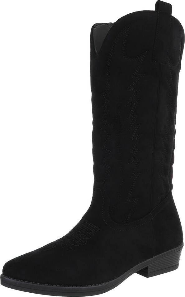 Ital-Design Damen Stiefel mit Kunstvollen Details für Freizeit und Alltag Westernstiefel (90482466) Blockabsatz Flache Stiefel in Schwarz (schwarz)