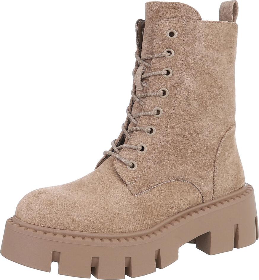 Ital-Design Damen Stiefel mit robustem Design für Alltag und Freizeit Schnürstiefelette (90109791) Blockabsatz Stiefeletten in Hellbraun (braun)