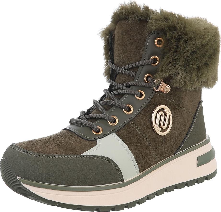 Ital-Design Damen Winterboots mit Futter und modischem Design Schnürstiefelette (90417767) Keilabsatz/Wedge Stiefeletten in Grün (grün)