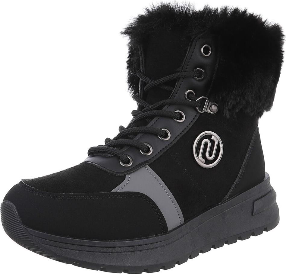 Ital-Design Damen Winterboots mit Futter und modischem Design Schnürstiefelette (90417774) Keilabsatz/Wedge Stiefeletten in Schwarz (schwarz)