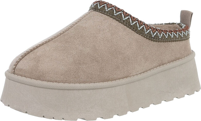 Ital-Design Die bequemen Plateau-Slipper Hausschuh (87475107) Flach Stiefeletten in Khaki (braun)