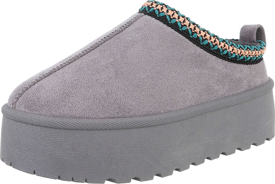 Ital-Design Die bequemen Plateau-Slipper Hausschuh (87740175) Flach Stiefeletten in Grau (grau)