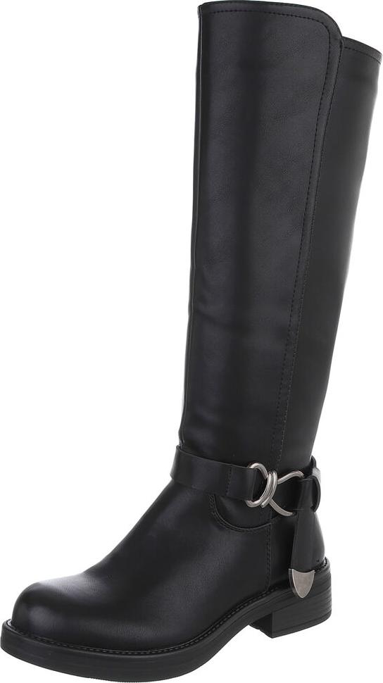 Ital-Design Elegante Damen Longboots mit Komfort und modischen Details Stiefel (90471283) Blockabsatz Flache Stiefel in Schwarz (schwarz)
