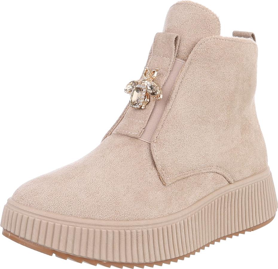 Ital-Design Elegante Damen Plateau-Stiefeletten mit Dekorativem Detail Plateaustiefelette (90457999) Keilabsatz/Wedge Stiefeletten in Beige (beige/braun)