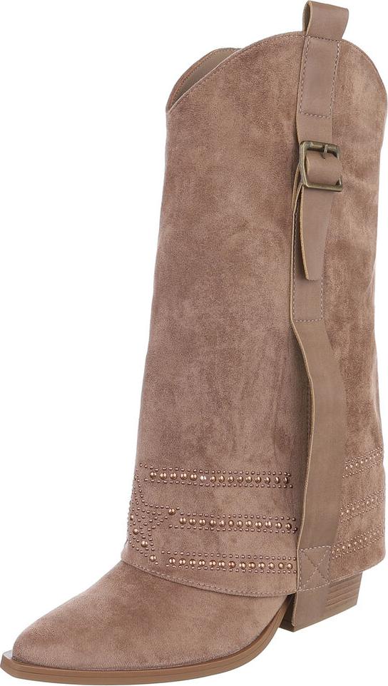 Ital-Design Elegante Damen-Stiefel mit Absatz und hochwertiger Verarbeitung Westernstiefel (90503087) Blockabsatz Stiefel in Hellbraun (braun)