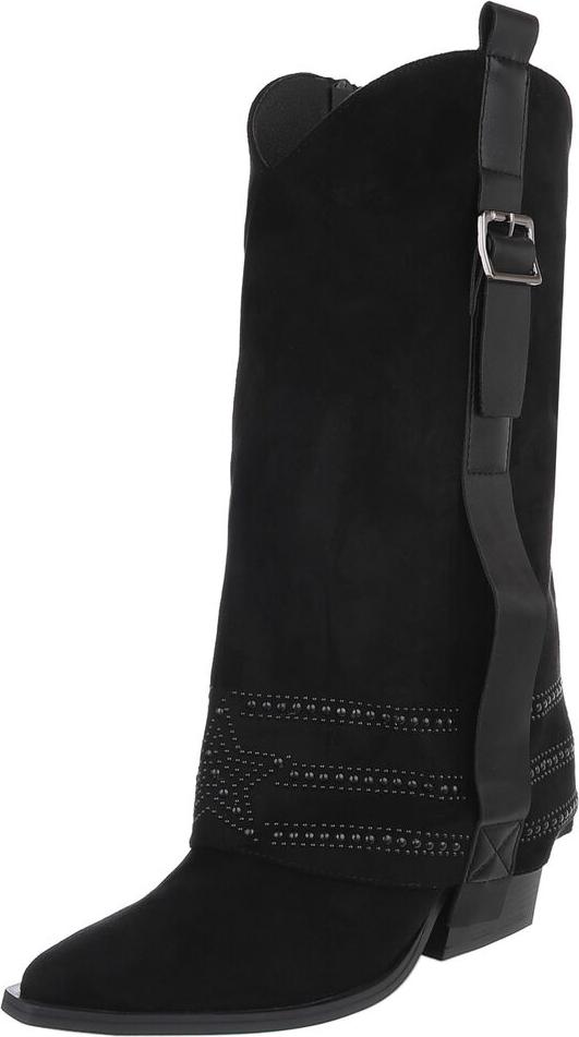 Ital-Design Elegante Damen-Stiefel mit Absatz und hochwertiger Verarbeitung Westernstiefel (90503100) Blockabsatz Stiefel in Schwarz (schwarz)