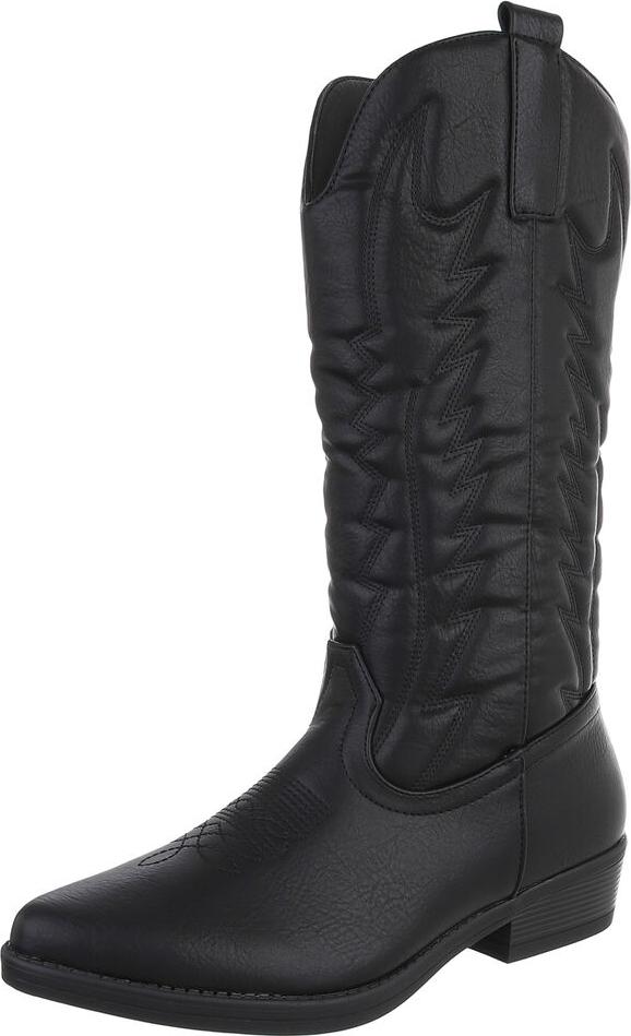 Ital-Design Elegante Damen-Stiefel mit Kunstvollem Design und Komfort Westernstiefel (90482544) Blockabsatz Flache Stiefel in Schwarz (schwarz)