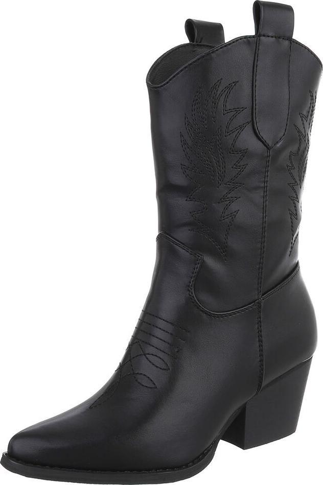 Ital-Design Elegante Damen Stiefel mit Stickerei für Alltag und Freizeit Westernstiefelette (90482745) Blockabsatz Stiefeletten in Schwarz (schwarz)