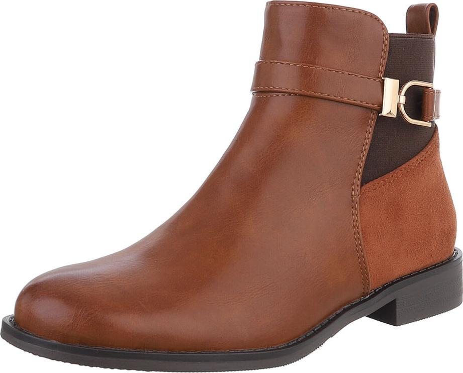 Ital-Design Elegante Damen Stiefeletten mit Schnalle für Herbst/Winter Stiefelette (90169409) Blockabsatz Chelsea Boots in Camel (braun)
