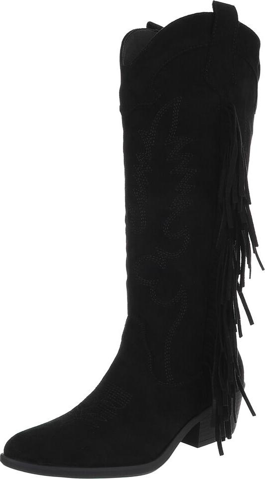 Ital-Design Elegante Damenstiefel mit Fransen für Alltag und Freizeit Westernstiefel (90471230) Blockabsatz Stiefel in Schwarz (schwarz)
