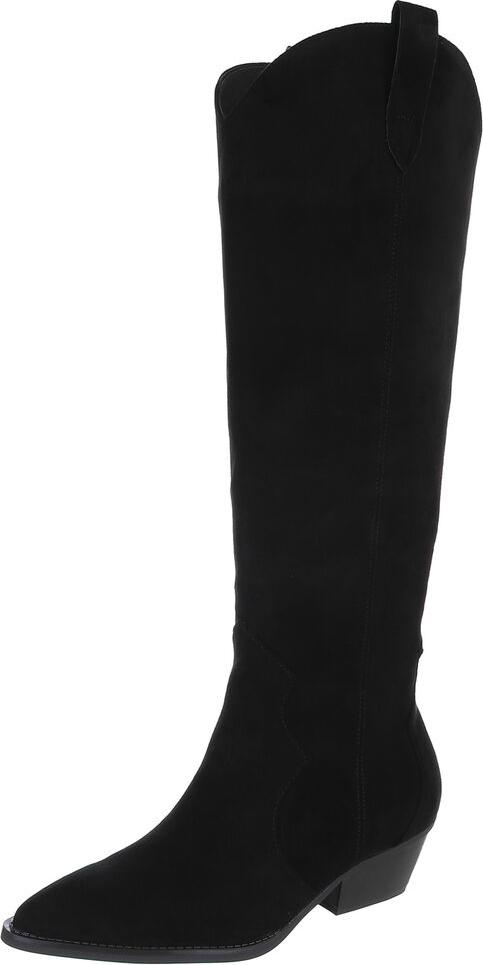 Ital-Design Elegante Damenstiefel mit hohem Schaft und Komfort Westernstiefel (90515115) Blockabsatz Flache Stiefel in Schwarz (schwarz)