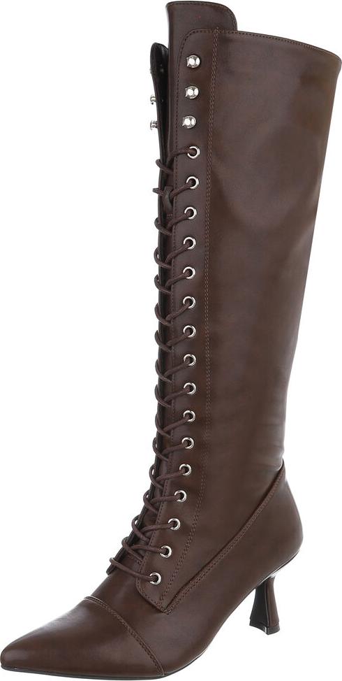 Ital-Design Elegante Damenstiefel mit Schnürung und Absatz Schnürstiefel (90417784) Pfennig-/Stilettoabsatz Stiefel in Braun (braun)