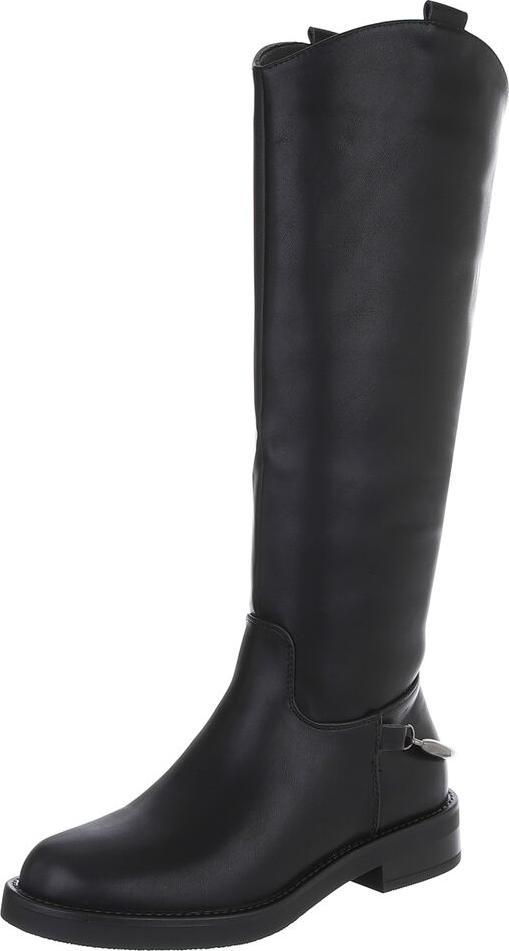 Ital-Design Elegante hohe Stiefel für Damen mit hohem Komfort Stiefel (90471270) Blockabsatz Flache Stiefel in Schwarz (schwarz)