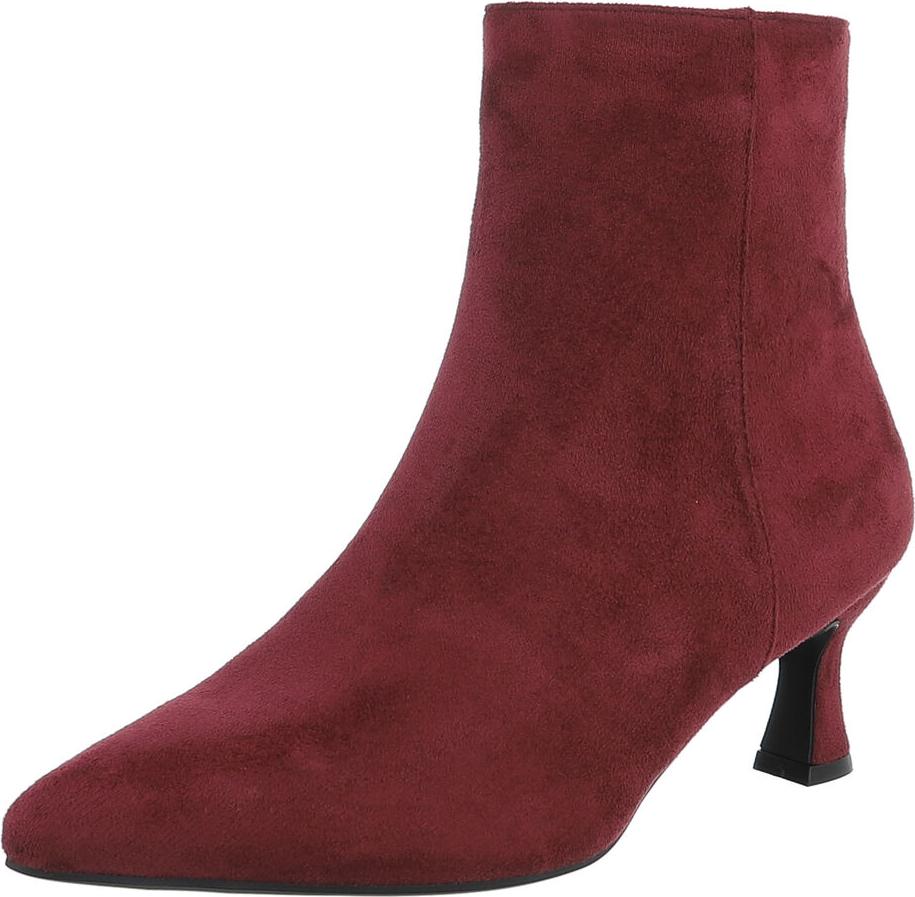 Ital-Design Elegante kniehohe Stiefel für Damen mit niedrigem Absatz Stiefelette (90109866) Pfennig-/Stilettoabsatz Stiefeletten in Weinrot (rot)