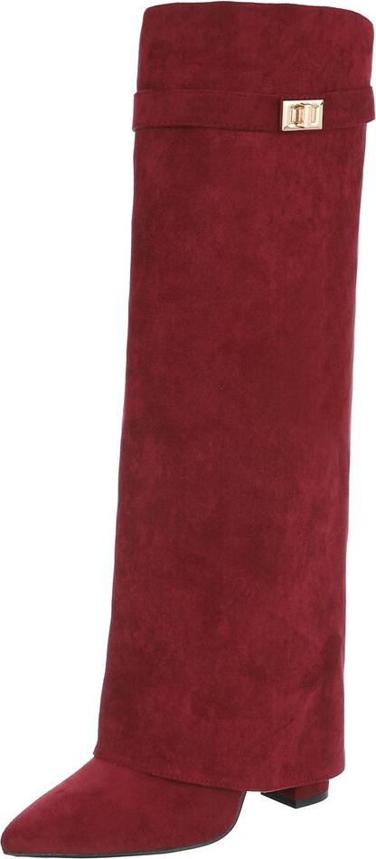 Ital-Design Elegante kniehohe Stiefelette mit Blockabsatz für Damen High-Heel-Stiefel (Wine-WLD)