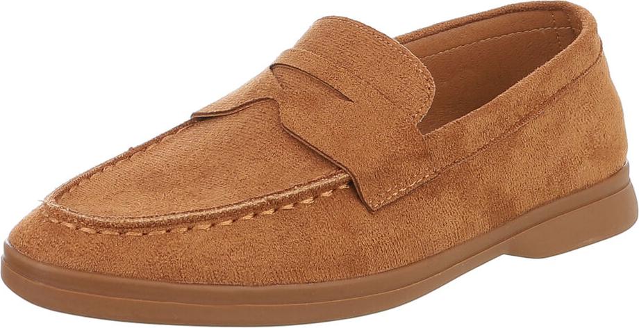 Ital-Design Elegante Mokassins für Damen – Komfortabel und Vielseitig Slipper (90033043) Blockabsatz Mokassins in Camel (braun)