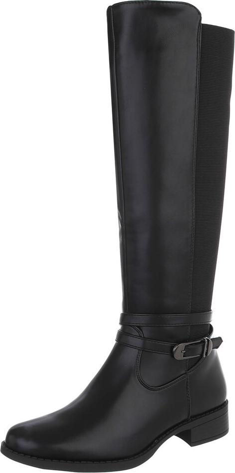 Ital-Design Elegante Stiefel für Damen mit hoher Passform und Schnalle Stiefel (90169488) Blockabsatz Flache Stiefel in Schwarz (schwarz)